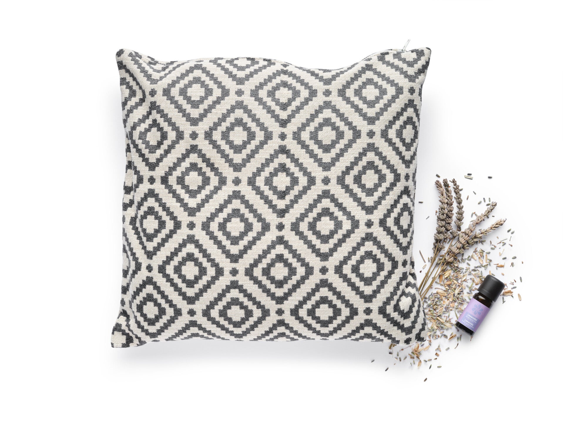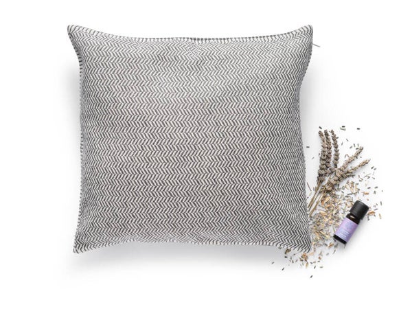 Le coussin contient un mélange de fleurs de lavande séchées de France/Provence et de paille de millet issue de l’agriculture biologique suisse.