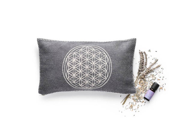 Le coussin contient un mélange de fleurs de lavande séchées de France/Provence et de paille de millet issue de l’agriculture biologique suisse.